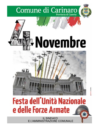 Il Sindaco e l'amministrazione Comunale celebrano con un manifesto commemorativo la Festa dell'unita' nazionale e delle Forze Armate