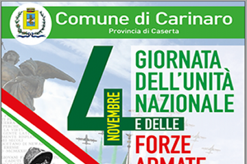 4 Novembre Giornata dell'Unita' d'Italia e delle forze Armate. La commemorazione sarà celebrata il 7 novembre come da programma allegato